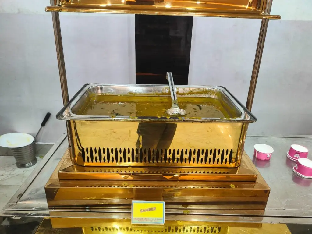 Gallery | The Royal Caters Our Gallery Moments of Taste, Elegance & Celebration Wedding Catering Corporate Events Luxury Buffet Setup Special Occasions Traditional Cuisine Live Food Counters LIVE COUNTER Baby corn in Tequila shot Cone CONE1 PEARL BALL PHUSKA COUNTER Paneer Shashlik live CHAAT & Snacks Bombay Tikki Chaat Phuska Plate potli samosa PHUSKA COUNTER veg cigar RICE STEAM RICE JIRA RICE BIRIYANI Poita Vat Bread Section Garlic Butter Naan Naan Naan1 Rumali Roti Stuffed Kulcha Tawa Roti Indian Veg Achari Soya Chaap & Tawa Veg ALOO DUM KASHMIRI BIRYANI Dal Makhani RASVAREE MATAR PEA TIKKI Mixed Veg with Paneer Jira Onion Mint Pulao Chole Pindi Continentals Chicken Items Mutton Items South Indian Salad Counter Green Salad Decorated Salad Russian Salad Sprout Salad Tomato Khata Mitha Salad Vinegar Onion Dessert Chocolate Mooch Crispy Jalepi Fried Ice Cream live Fried Ice Cream orange souffle Lemon Pie Kunafa Lemon Souffle Sana Payas Mihidana & cream cheese Parfait Malai Malpuwa Pineapple Georgette orange souffle Lemon Pie Kunafa Lemon Souffle Sana Payas